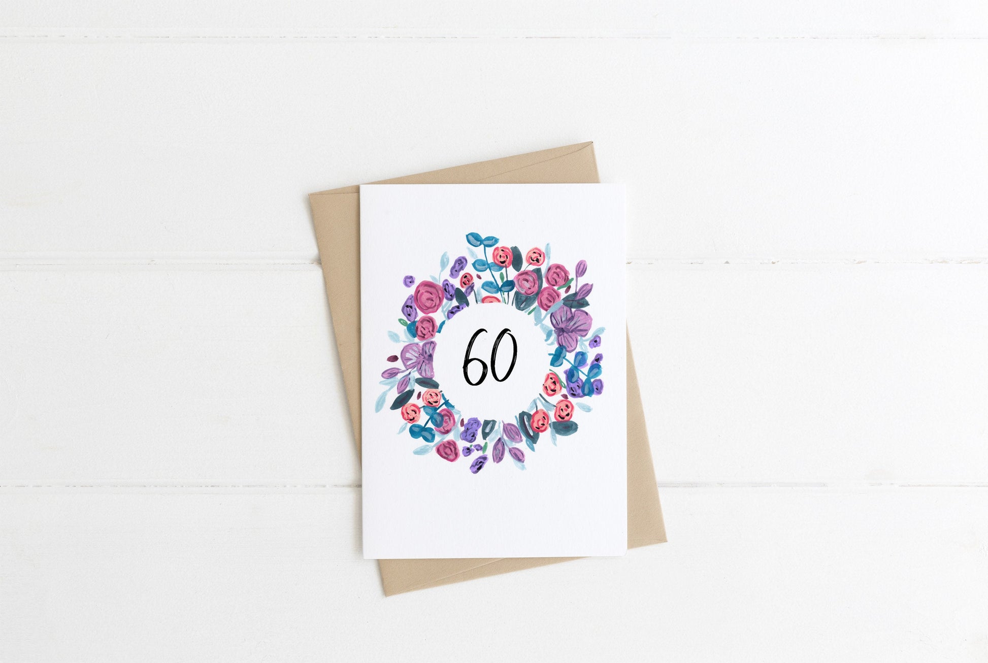 60th Birthday | Floral wreath | Greetings card